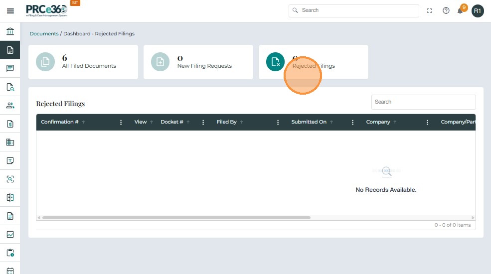 This queue is visible only to the Records Division, as they are responsible for reviewing and approving or rejecting filings.