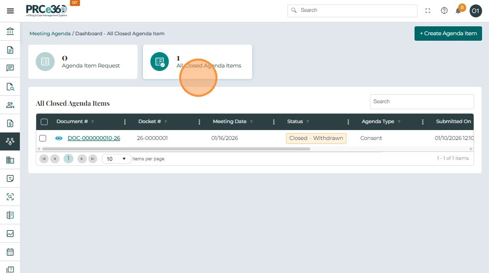 All Agenda ItemsChief of Staff DivisionDisplays all created agenda items.