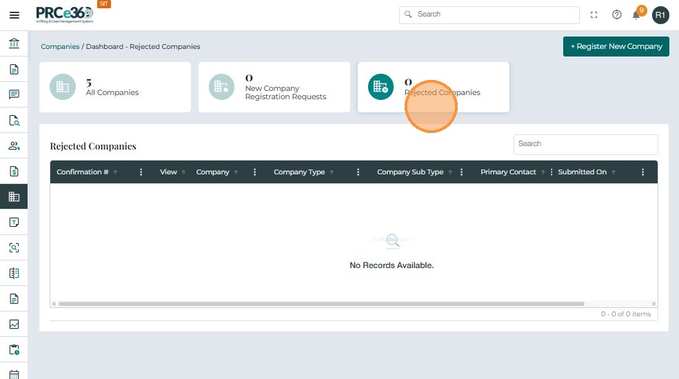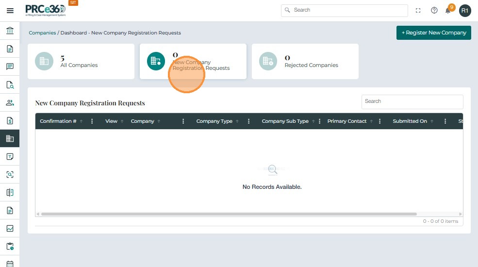 | New Company Registration Requests | Records Division | Lists pending registration requests. |