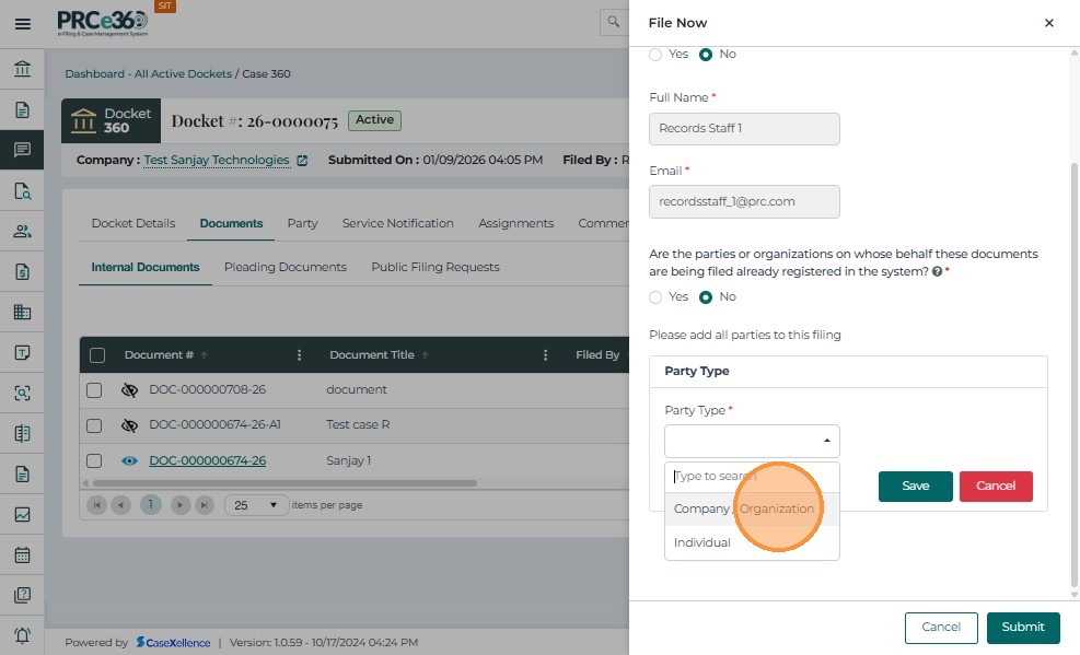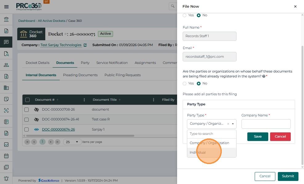 • Choose the party type as Company or Individual.
