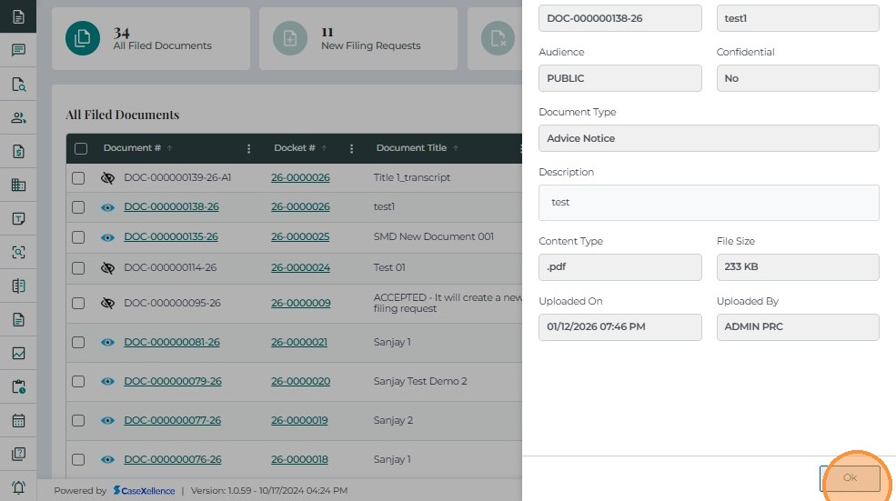 • Click Ok once the document details have been reviewed.