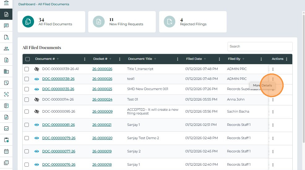 • Filed By – The person or role who submitted the filing request.