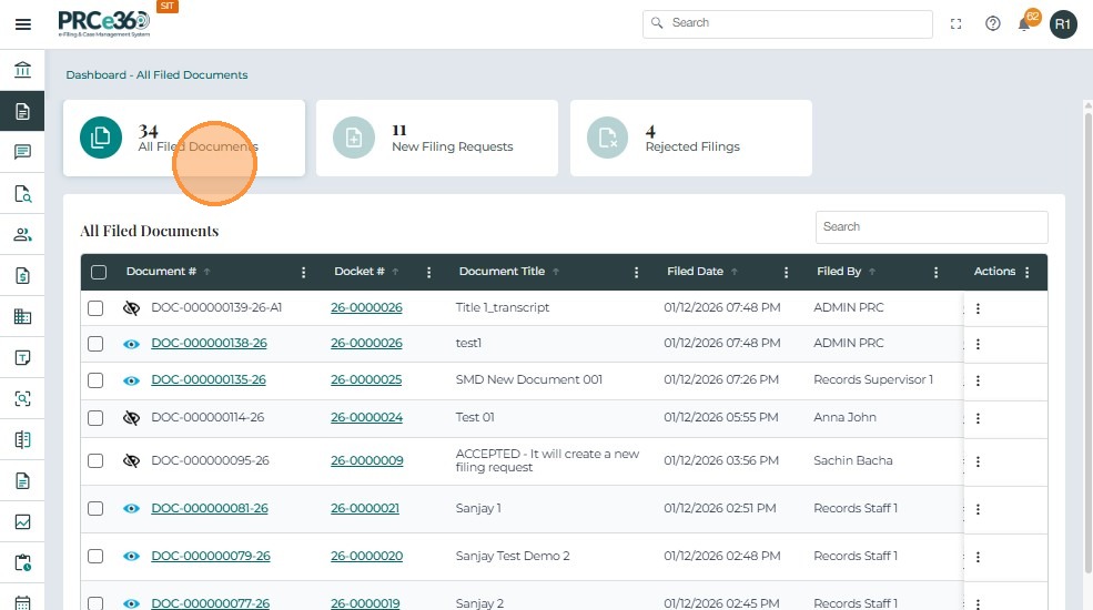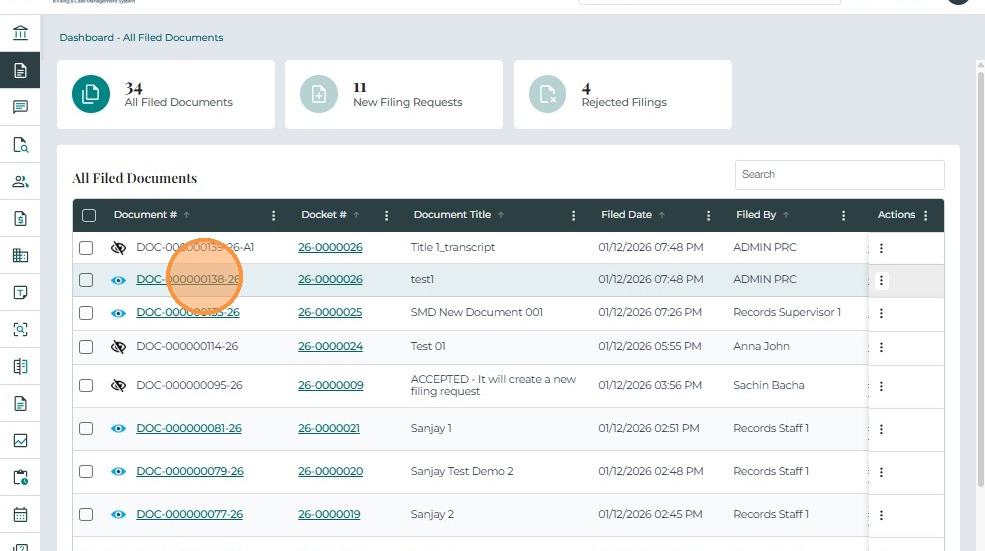 • In the All Filed Documents queue, the accepted document will be listed.