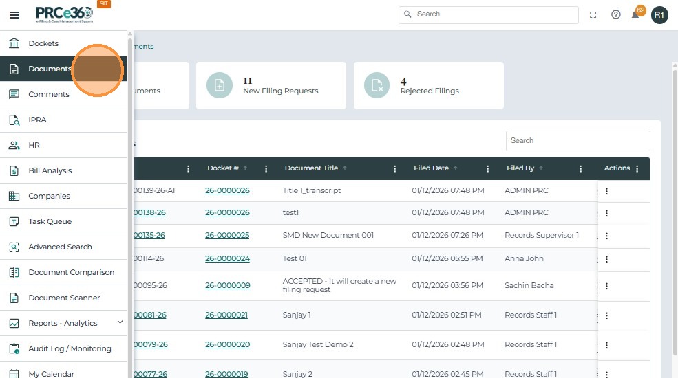 • From the side menu, navigate again to the Documents dashboard.
