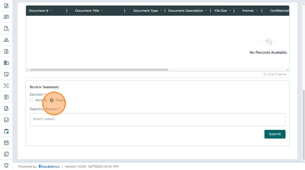 • After reviewing the filing request, the user can choose to Accept or Reject the request.
