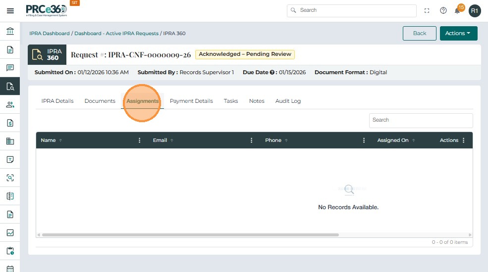 Assignments Tab (Records Supervisor View)