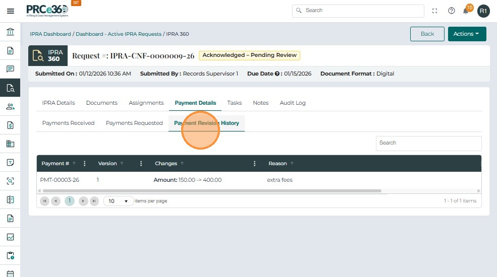 • Once submitted, the payment request is part of the IPRA case record and can be used for tracking and reporting.