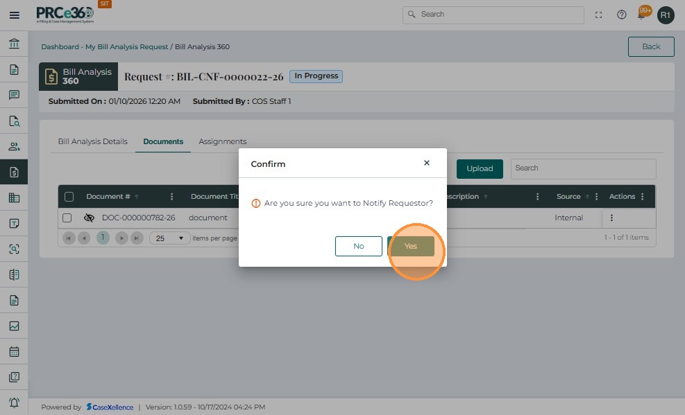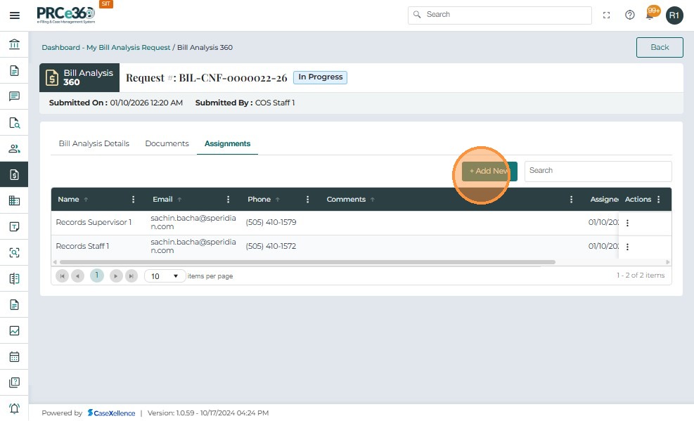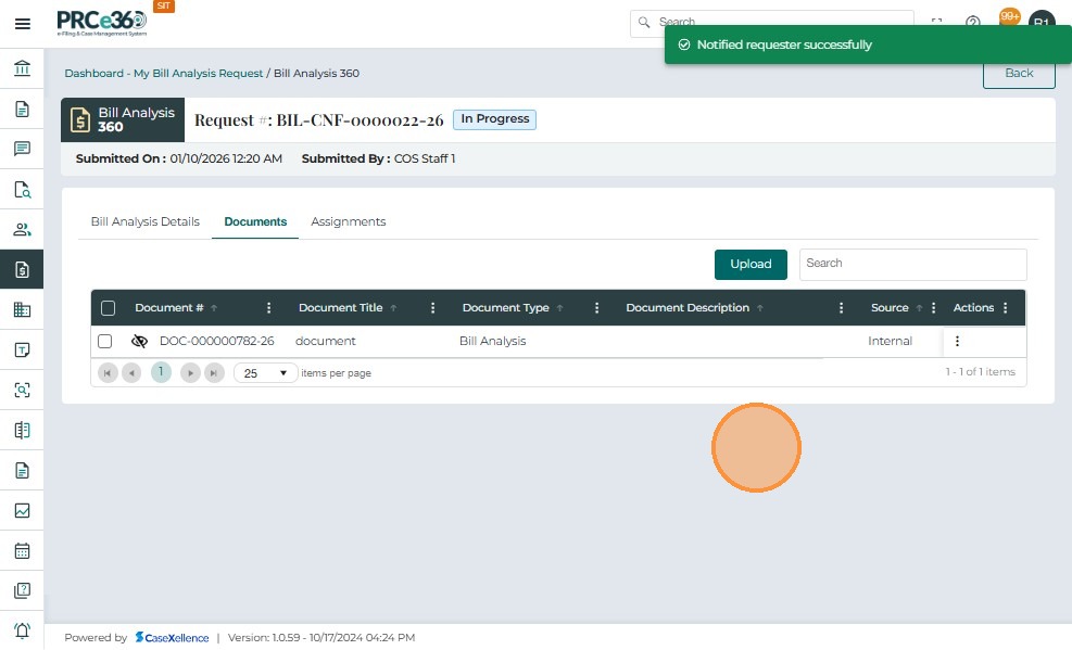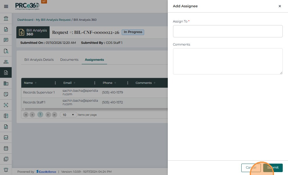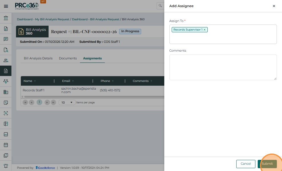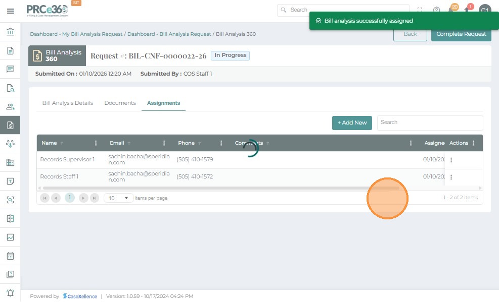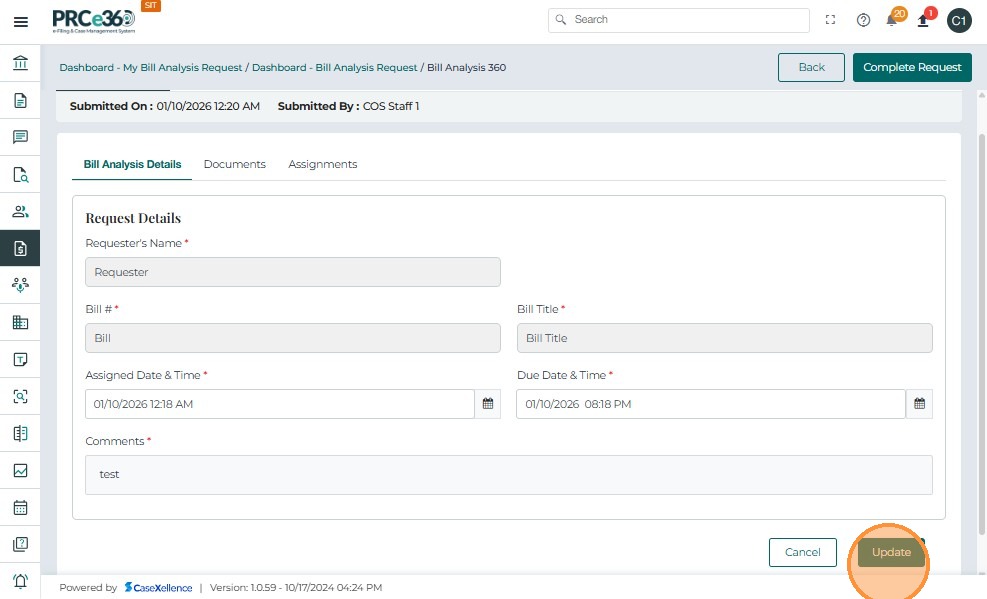 Assigned Internal Users (any PRC member assigned by COS)- View assigned requests in the My Bill Analysis Request queue