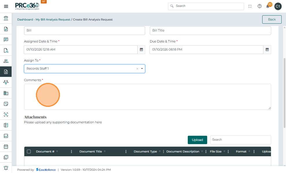 • Document Type – Automatically set to Bill Analysis and cannot be edited.