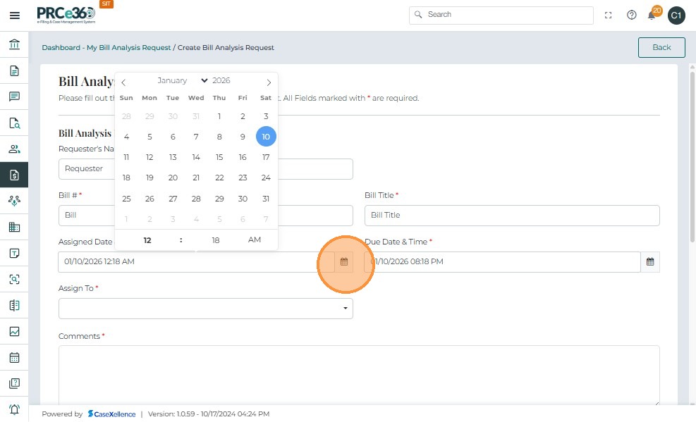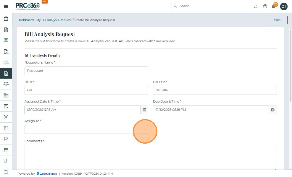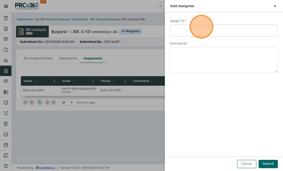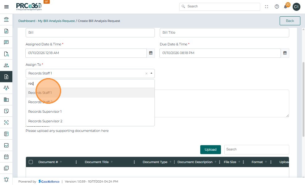 • In the Assign To dropdown, select one or more internal PRC members who will perform the bill analysis.