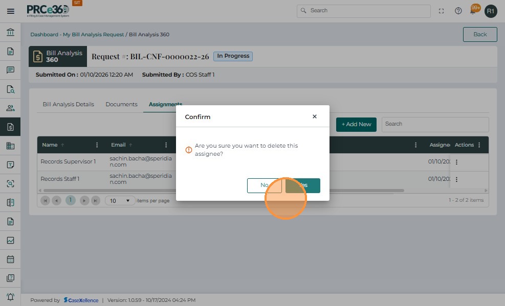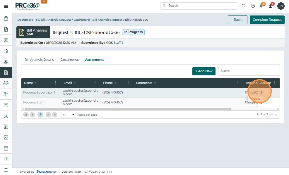 Authorized users can remove assignees from an active Bill Analysis request to manage workload and team composition.