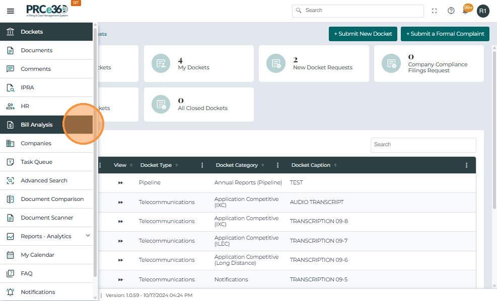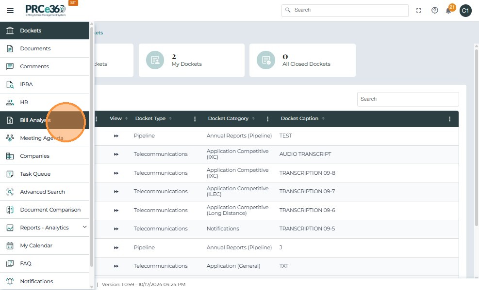 Users with the COS Supervisor or COS Staff role can access the Bill Analysis module by logging into the PRC Case Management System.