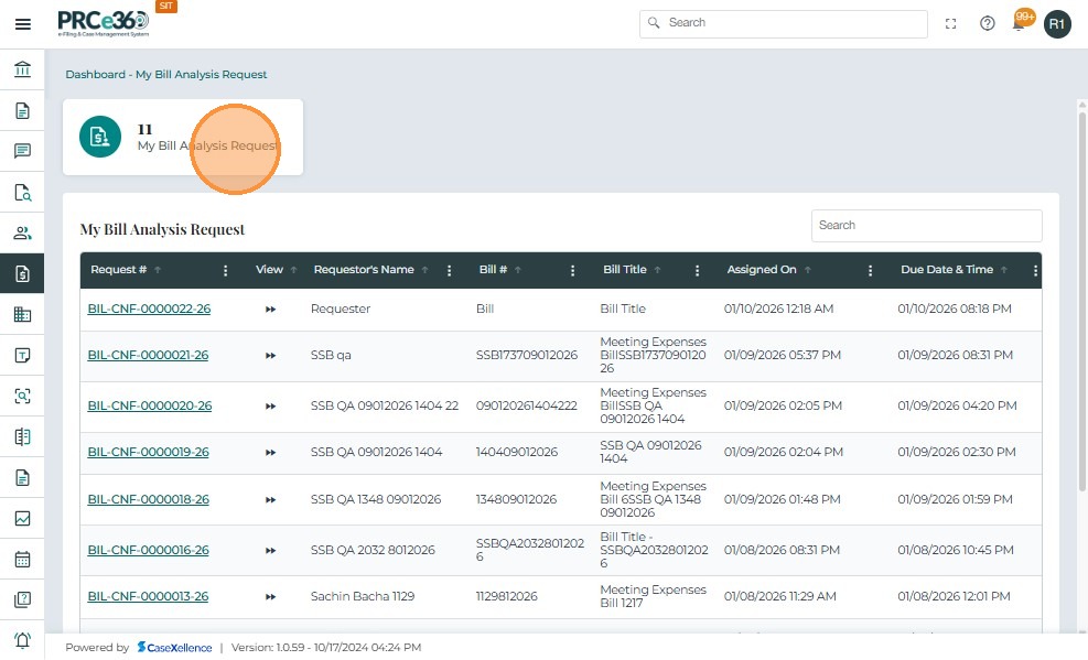 • My Bill Analysis Request – Requests assigned to the currently logged-in user.