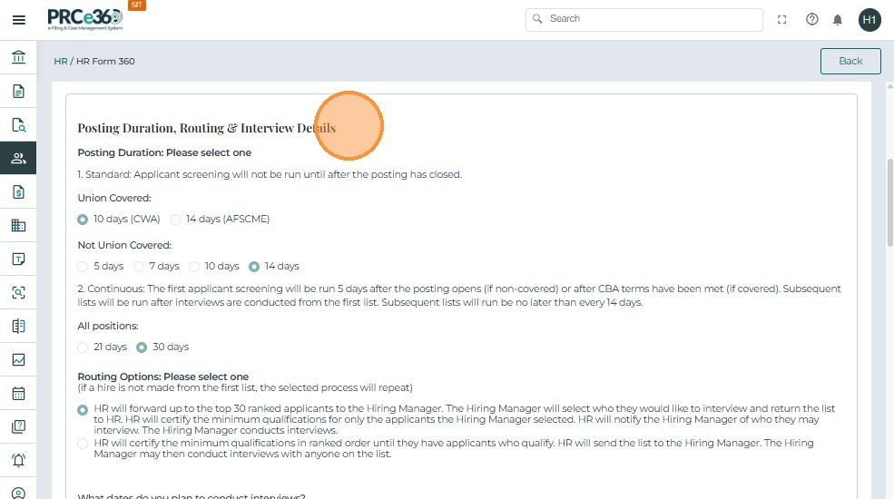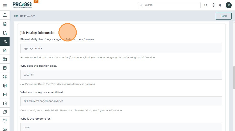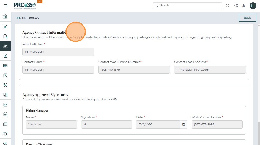 - Scroll down to review all sections completed by HR Staff and Hiring Manager.
