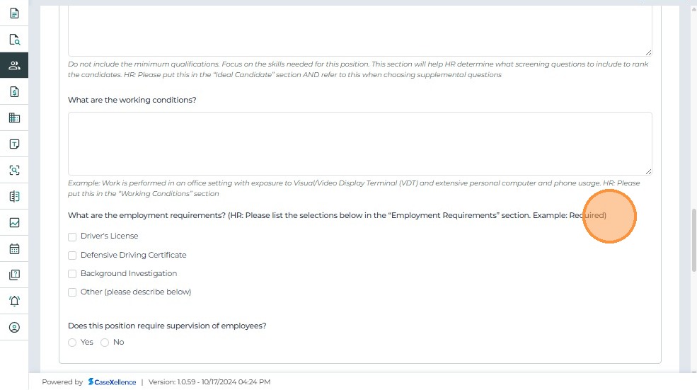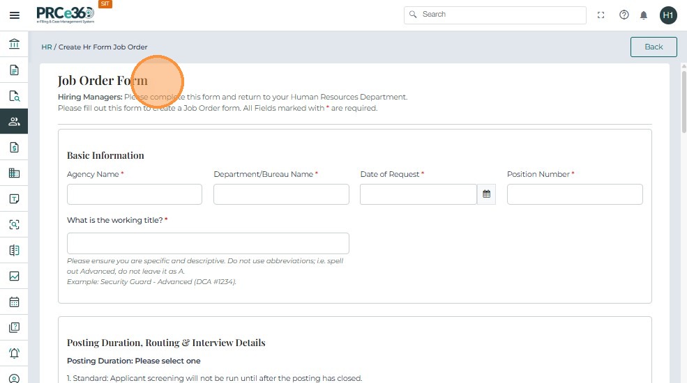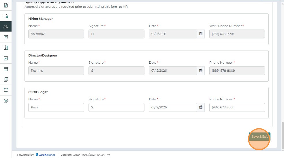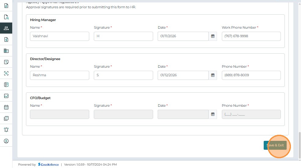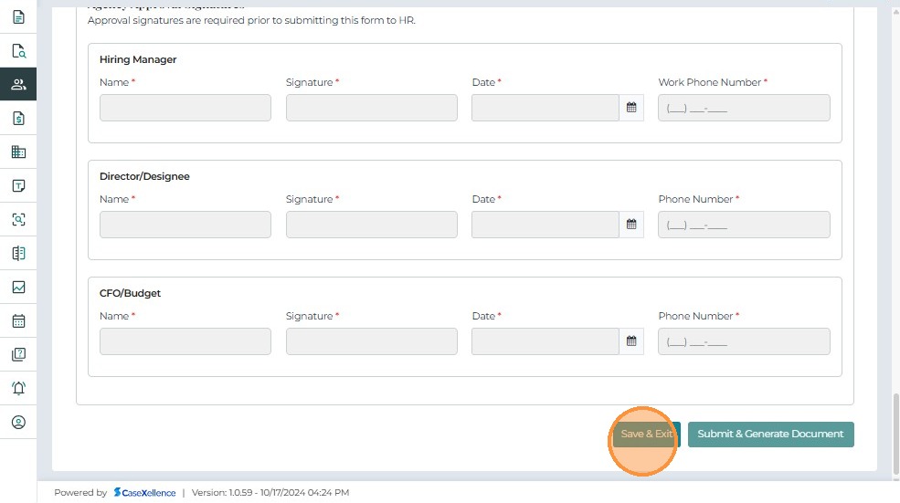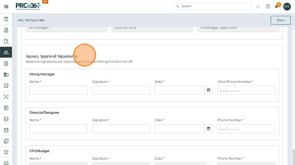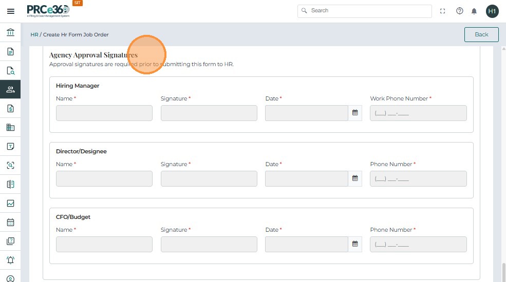 - Hiring Managers complete position-specific sections and approval fields when assigned.