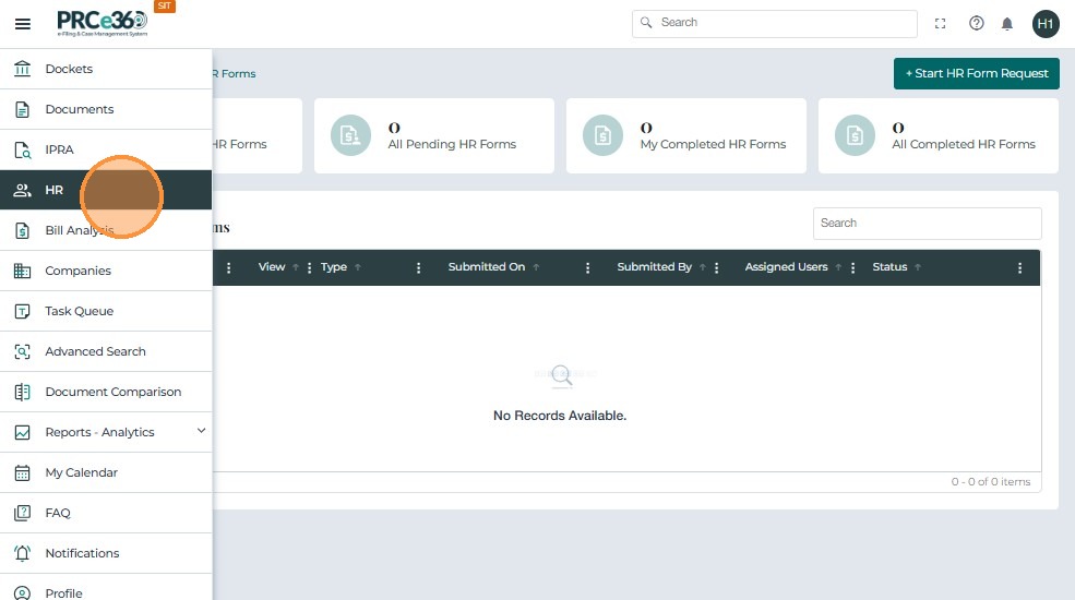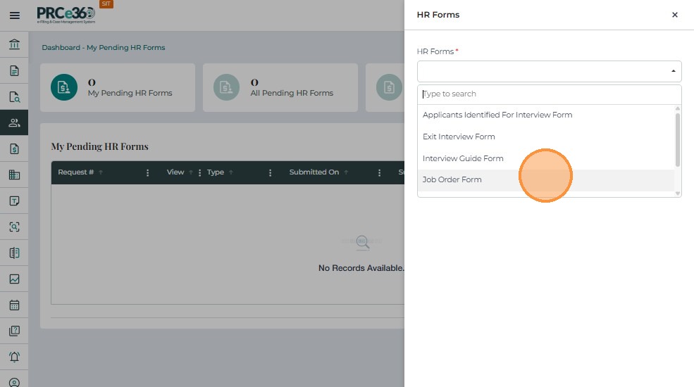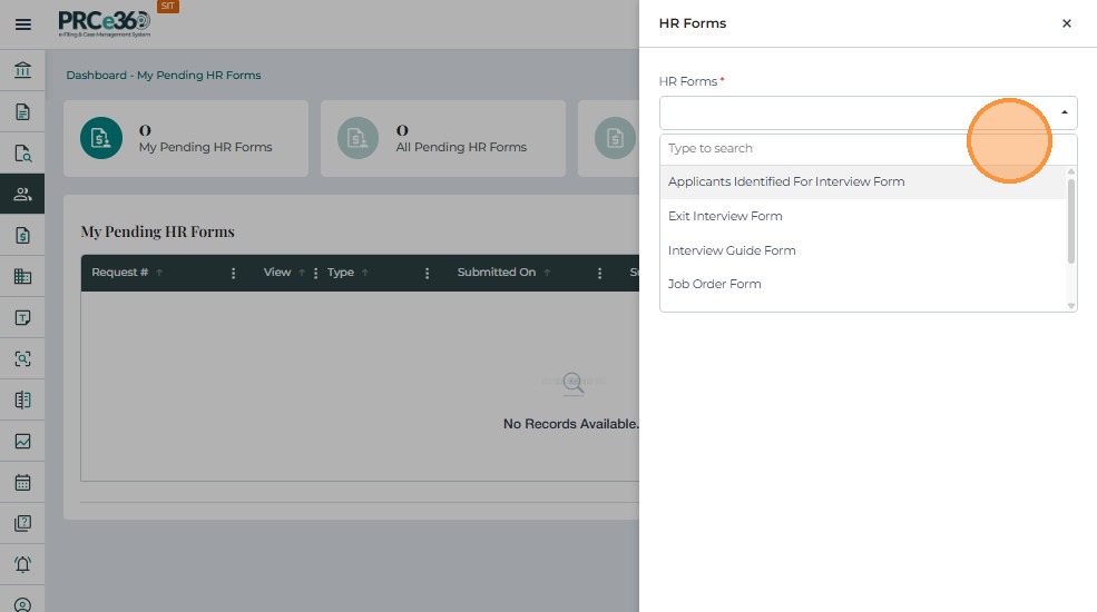 - Click the dropdown under HR Forms to view the full list of available forms.