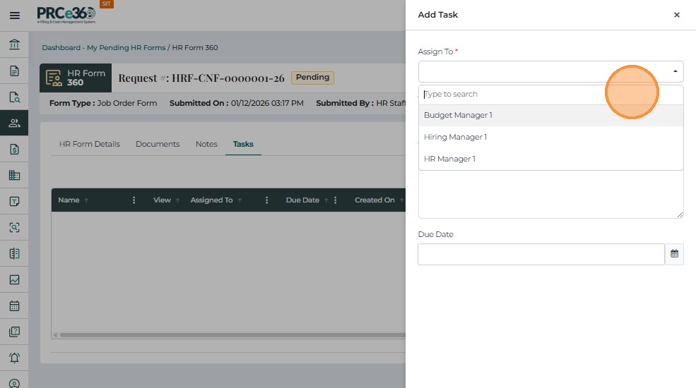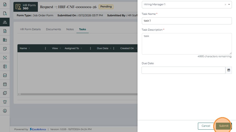 - Any Job Order Forms assigned to the Hiring Manager will appear in this queue.