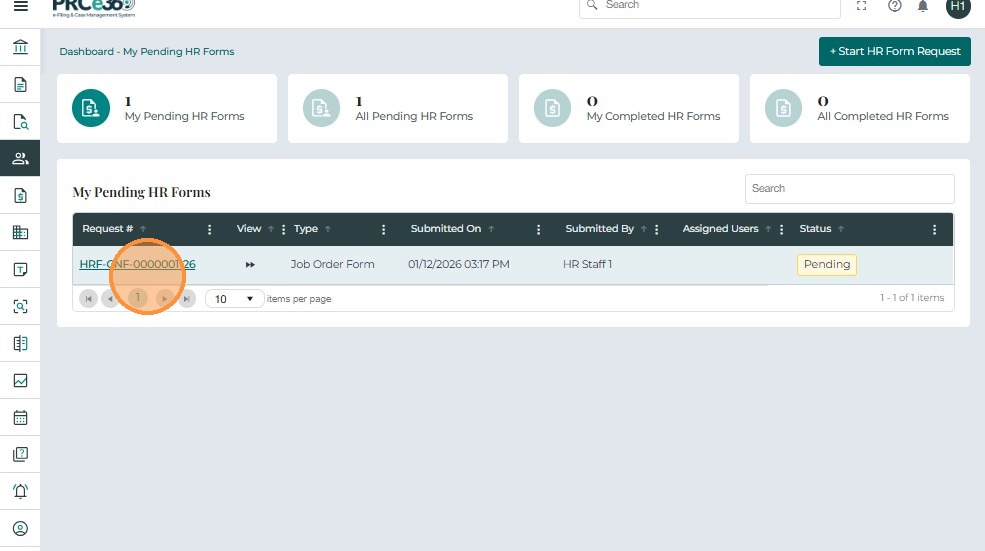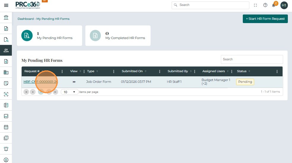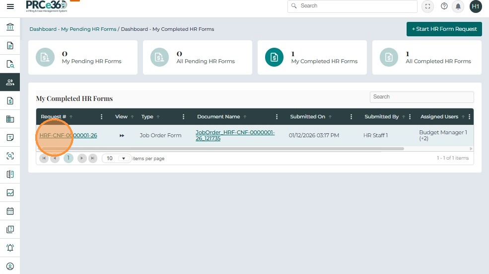 - Click the Request Number (e.g., HRF-CNF-0000020-25) to open the form.
