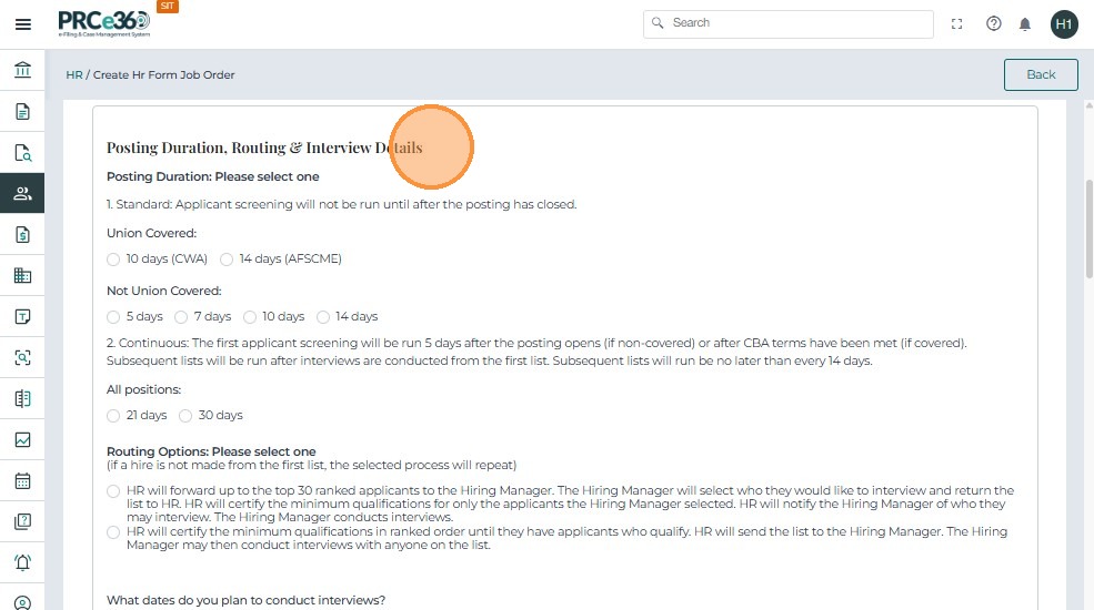 - The system displays the Posting Duration, Routing Options, and Interview Details section in read-only mode.