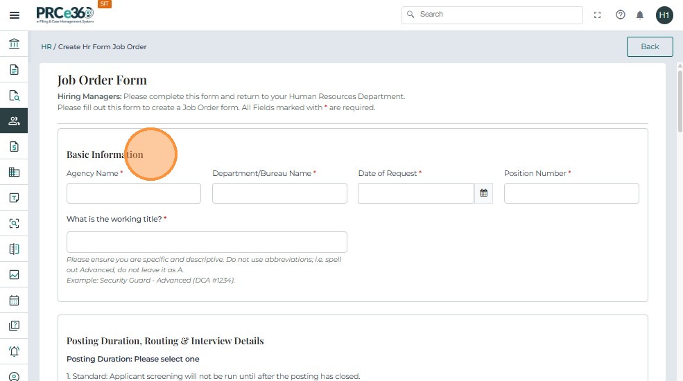 The Hiring Manager must complete the Job Posting Information section and their Agency Approval fields.
