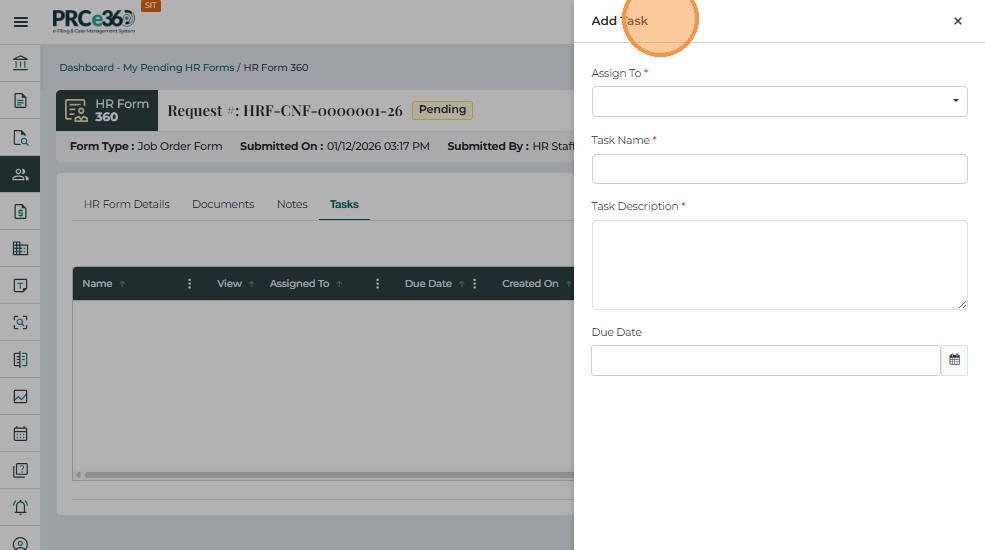 - After saving, the same Job Order Form will appear in My Pending HR Forms until the entire workflow is completed.