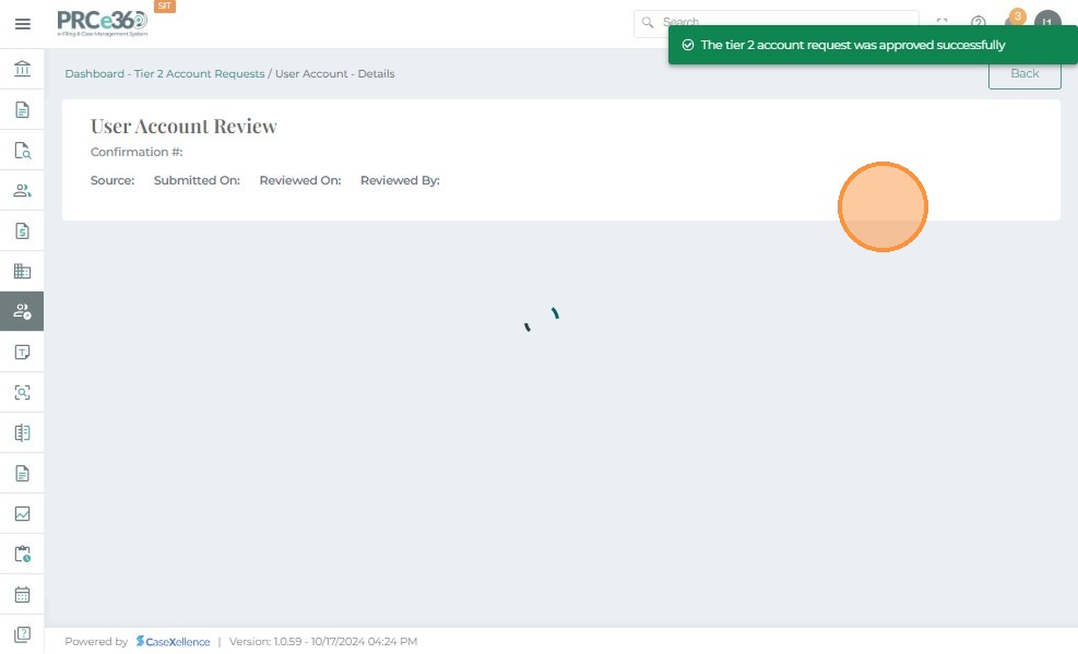 - A green banner appears: “The Tier 2 account request was approved successfully.”