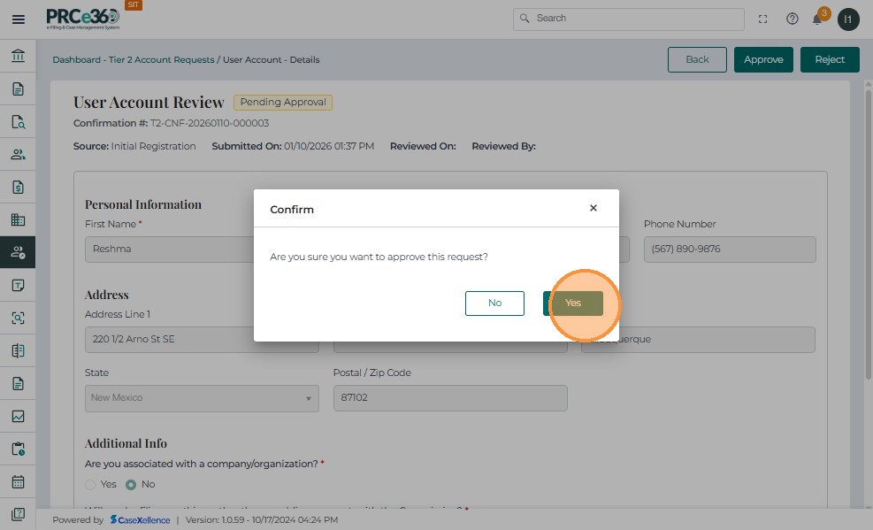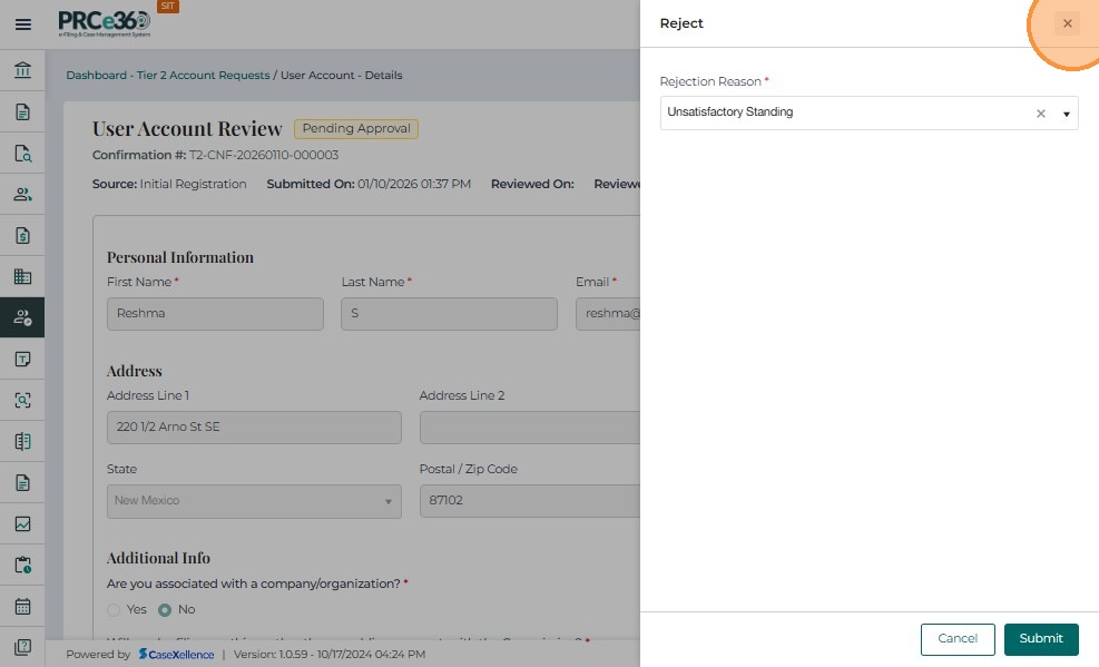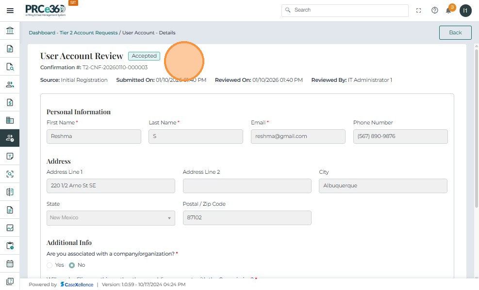Once approved by PRC IT/Admin, the user's account is activated as a Tier 2 account, granting access to enhanced portal functionalities such as filing new cases and submitting formal complaints.
