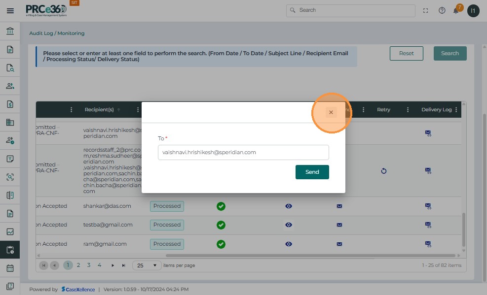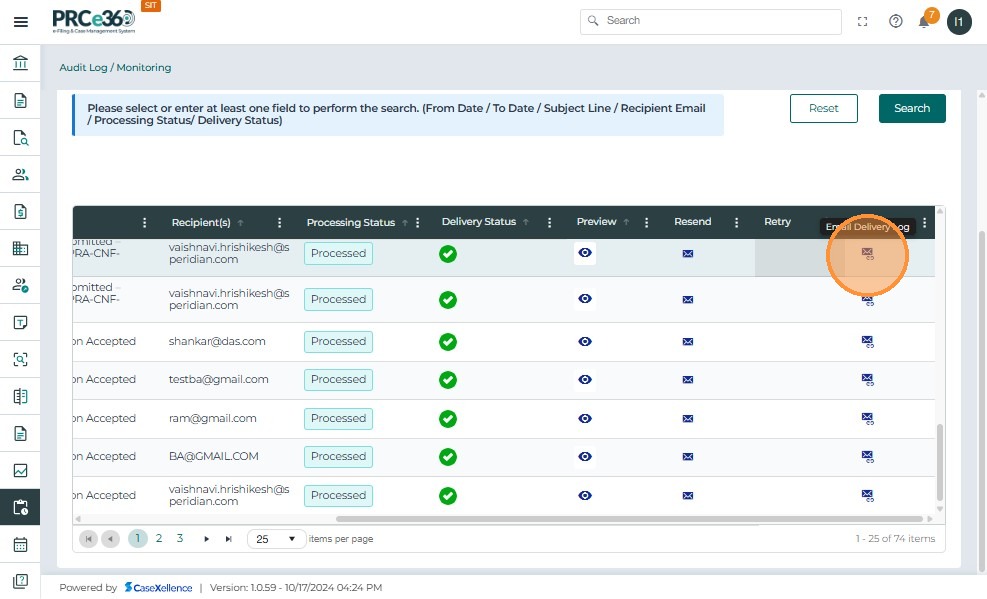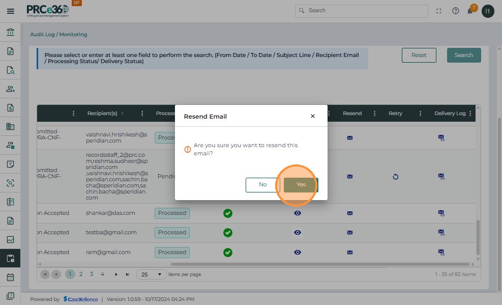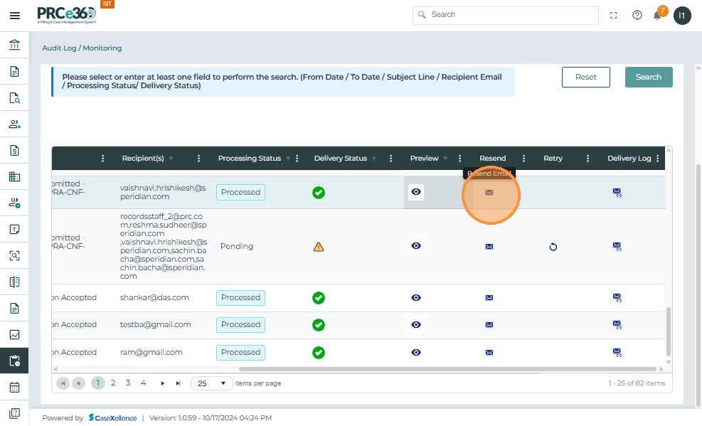 - Click the Resend icon to initiate resending the selected email.