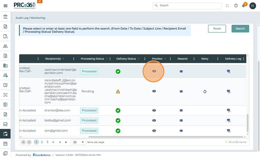 | Preview | Allows viewing of the full email content by clicking the eye icon. |