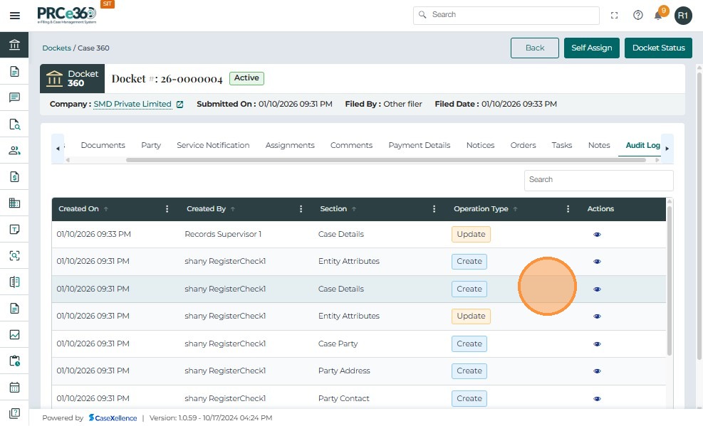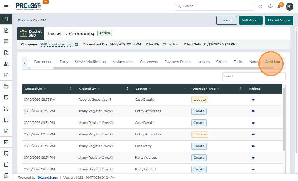 Viewing Audit Log in Case 360