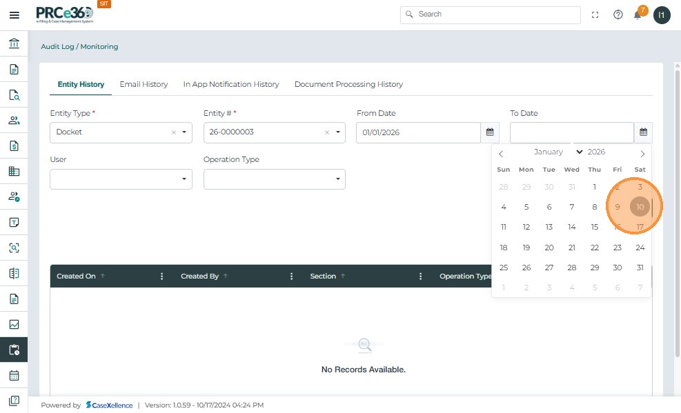 Note: If no records are available, the system will display "No Records Available."