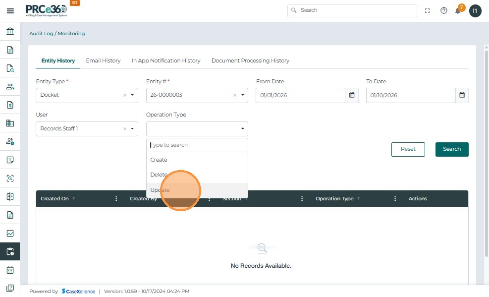 - Select an Operation Type to filter actions such as Create or Update.