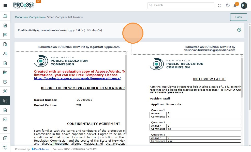 • The interface is divided into two panels (left and right) for comparing two documents side by side.