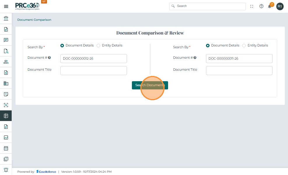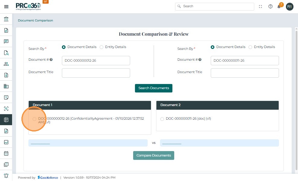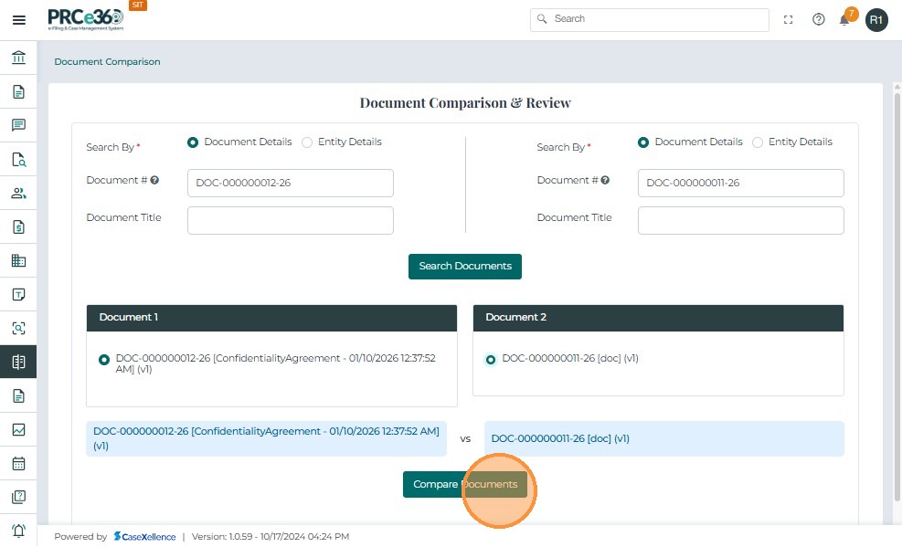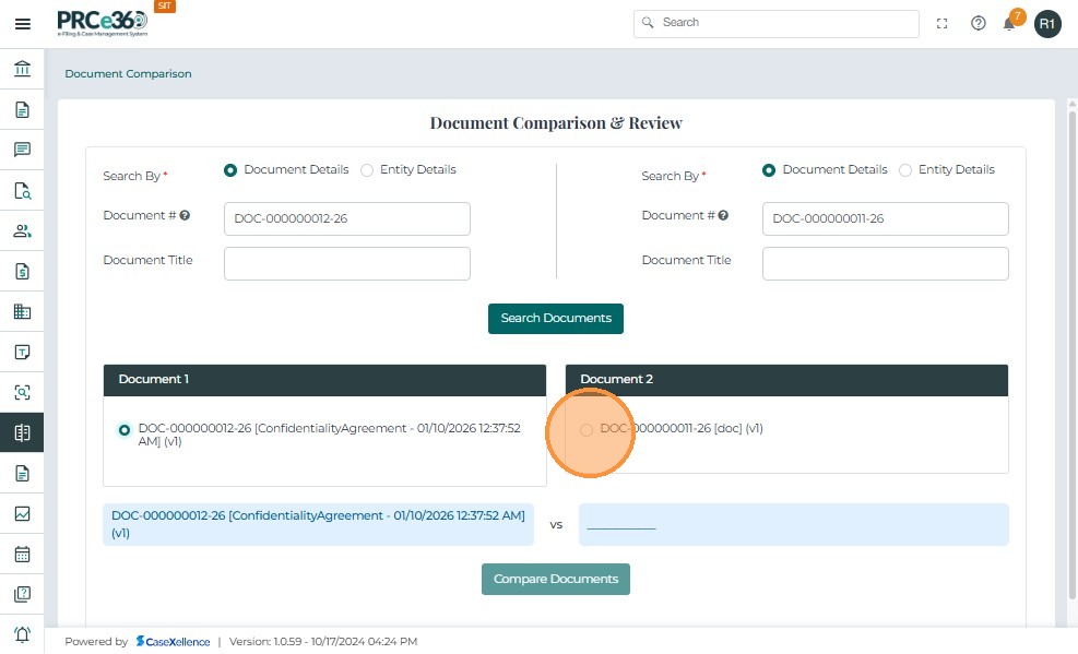 • The system displays the documents found under Document 1 and Document 2 sections.
