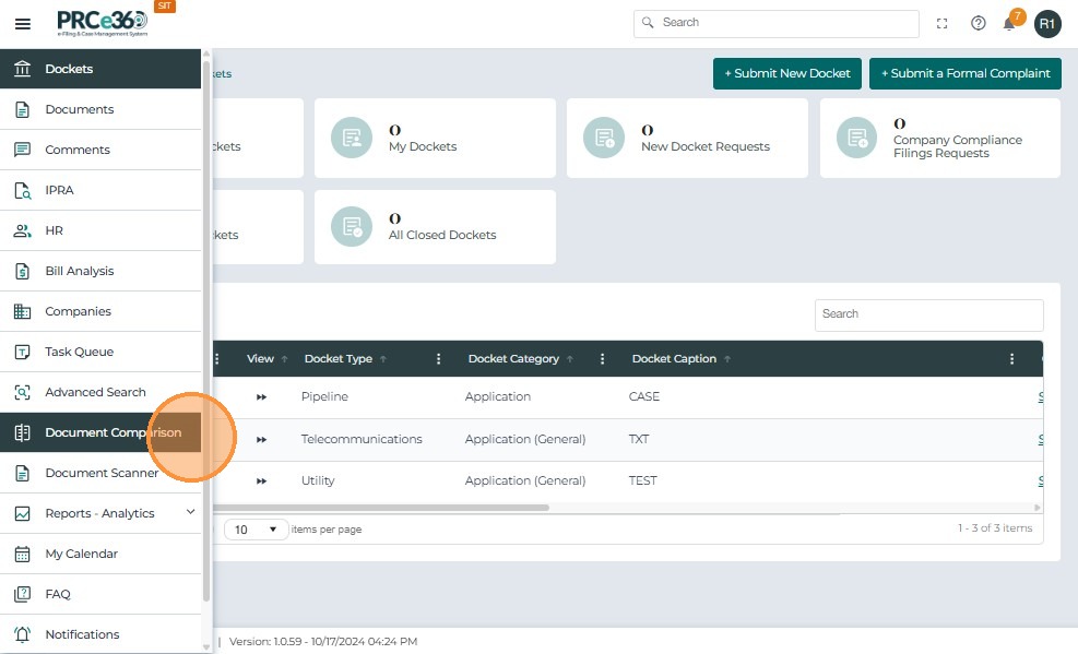 The Document Comparison/Versioning feature allows users to maintain and track multiple iterations of the same document within a case. Each time a document is updated and re-uploaded, the system automatically stores it as a new version (e.g., V1, V2, V3), ensuring that earlier versions remain intact.