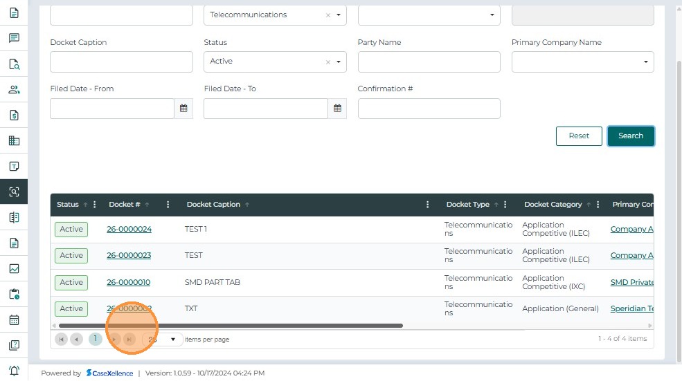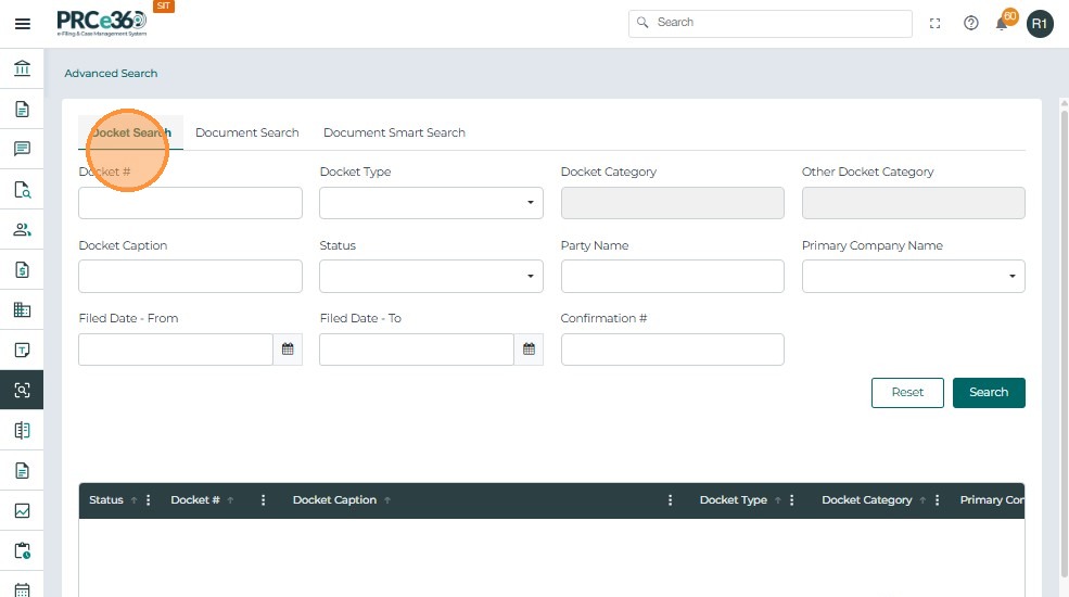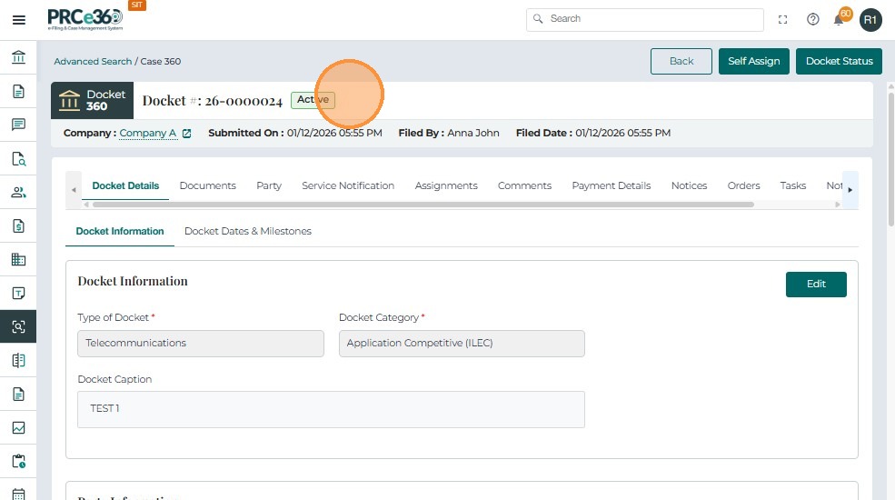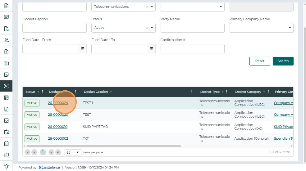 Click a Docket Number to open the case in Case 360 View