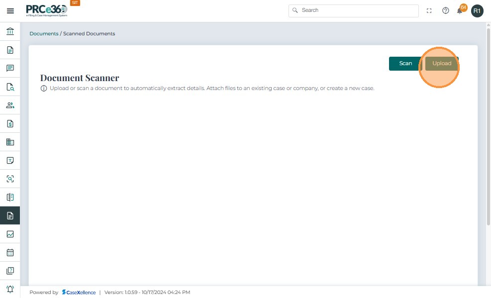• Click Upload on the Document Scanner page.