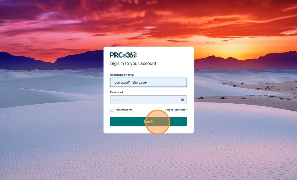 • Sign in to the application using your username and password.