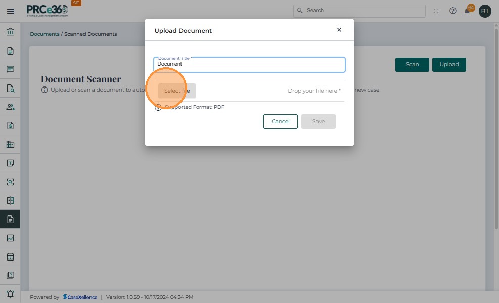 • Click Select file and choose the PDF document to upload.
