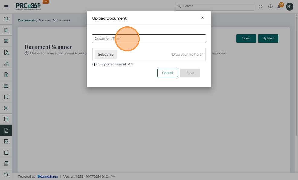 • In the Upload Document window, enter the Document Title.