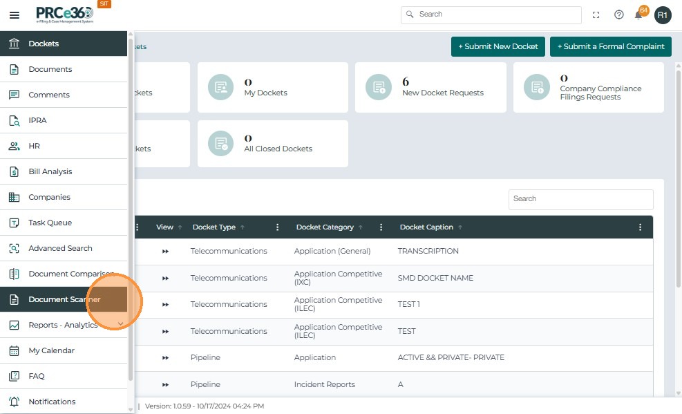 Note: Creating a new docket requires appropriate permissions.